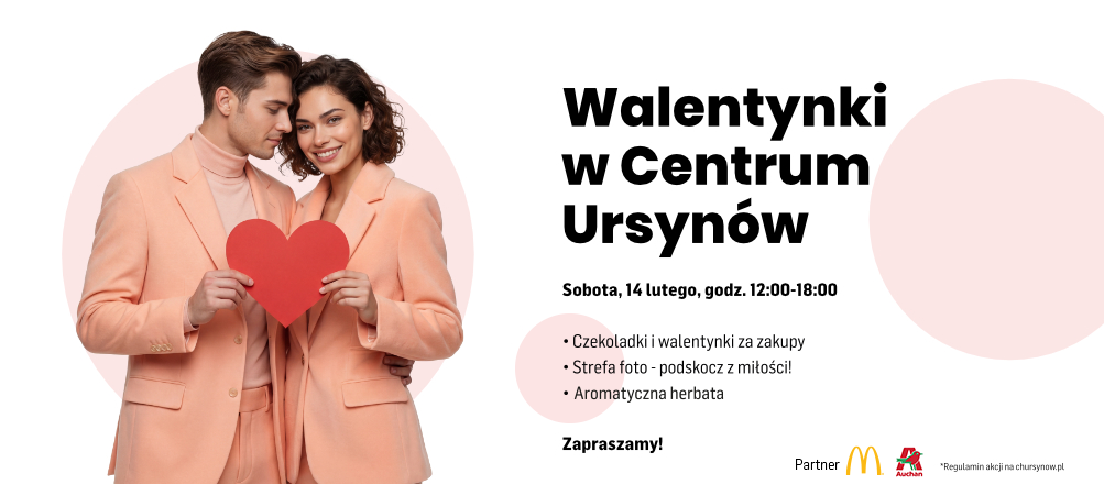 Serdecznie zapraszamy do odwiedzenia Centrum Ursynów w sobotę, 14 lutego, w godz. 12:00-18:00 i wspólnego świętowania Walentynek!